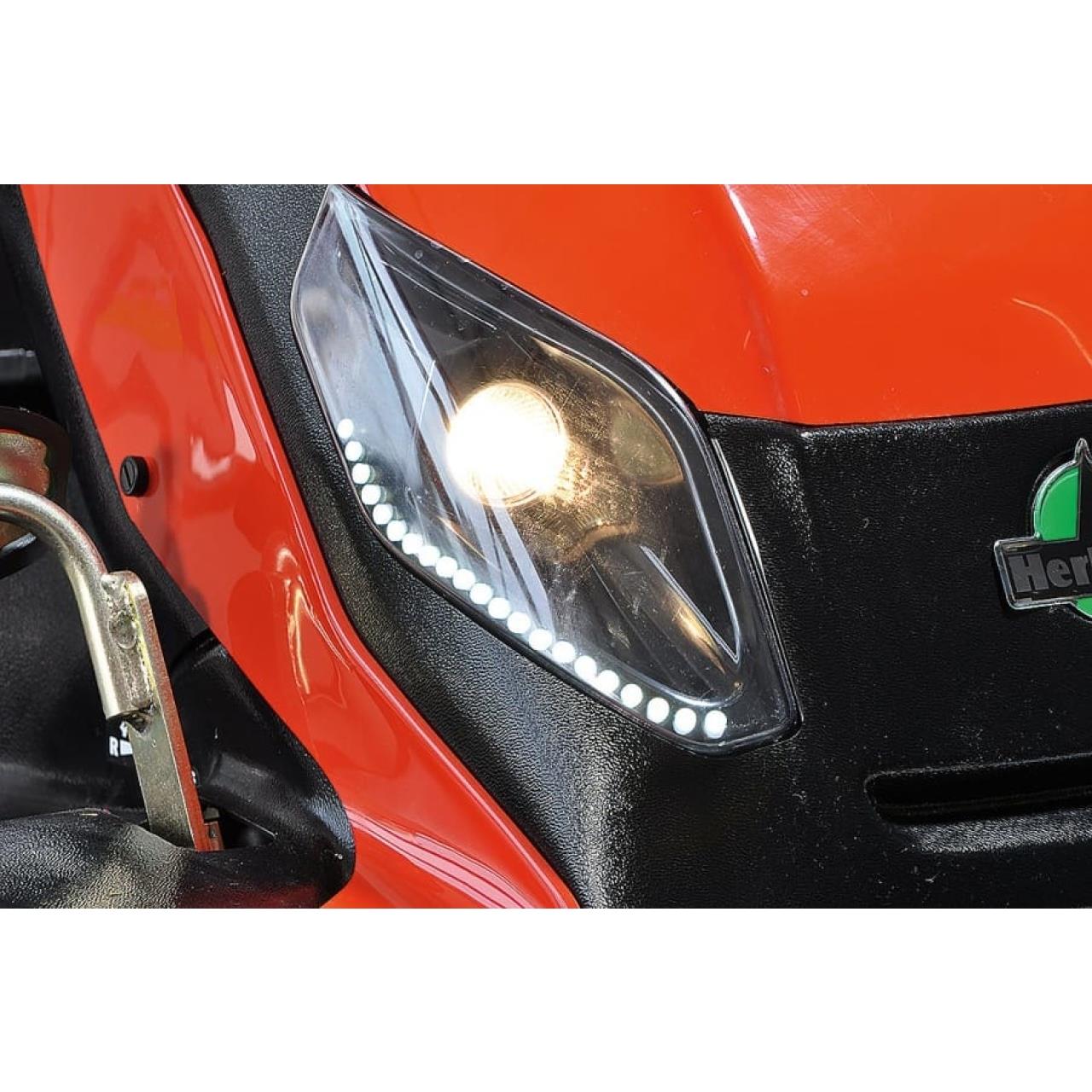 Als jüngstes Modell der HXT-Serie ist der Herkules HXT 132 26 4WD mit verstärktem Überrollbügel, zusätzlichem Rammschutz und solidem 132cm Hochgrasdeck ausgestattet. Der serienmäßige Allradantrieb und die griffigen Ackerstollenreifen bringen den Mäher sicher durch unwegsames Gelände und extensiv gepflegte Hochgrasflächen. Der Mäher ist optimiert für den professionellen Dauereinsatz. Komplette Beleuchtung mit LED-Tagfahrlicht, Tuff Torq K664 Profigetriebe, Komfortsitz mit Sicherheitsgurt, robustes Hochgrasdeck mit 132cm Schnittbreite und der durchzugsstarke Kawasaki Motor sind nur einige Bestandteile der kompletten Profiausstattung.